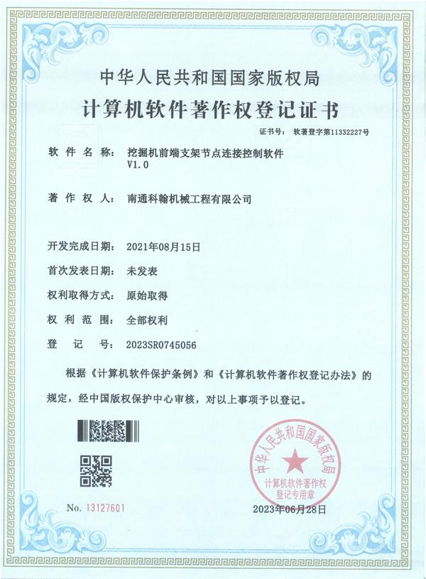 南通科翰機械工程有限公司 >> 榮譽資質 >> 挖掘機前端支架節點連接控制軟件V1.0